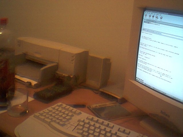 The windows program provided with the slimshot does quite a lot of post processing on the image. This is most noticable in low light conditions. (60W bulb in room, in this shot).