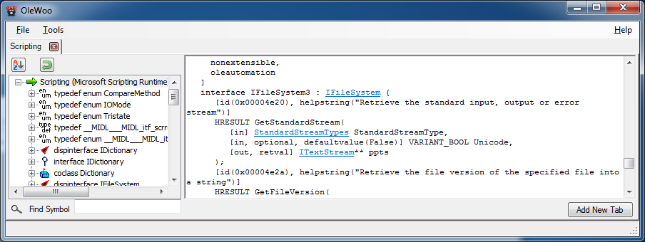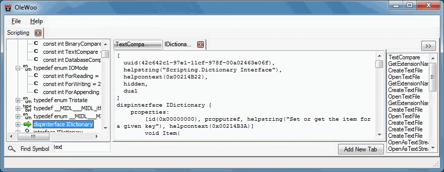 Click 'Add new Tab' to open up another view on the typelibrary - useful when you need to flick back and forth between interfaces.